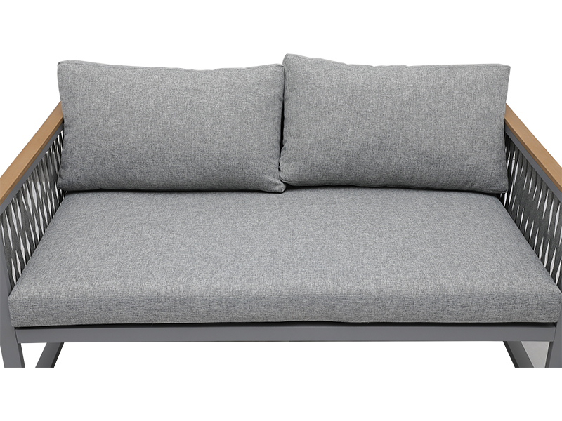 Vi har två vår egen fabrik. Så vi kan erbjuda priset och Custom KD Design Garden Outdoor Furniture Woven Rope Strap Soffa Set med sittdyna, syntetiskt trä på armstödet YQC-2786 direkt.